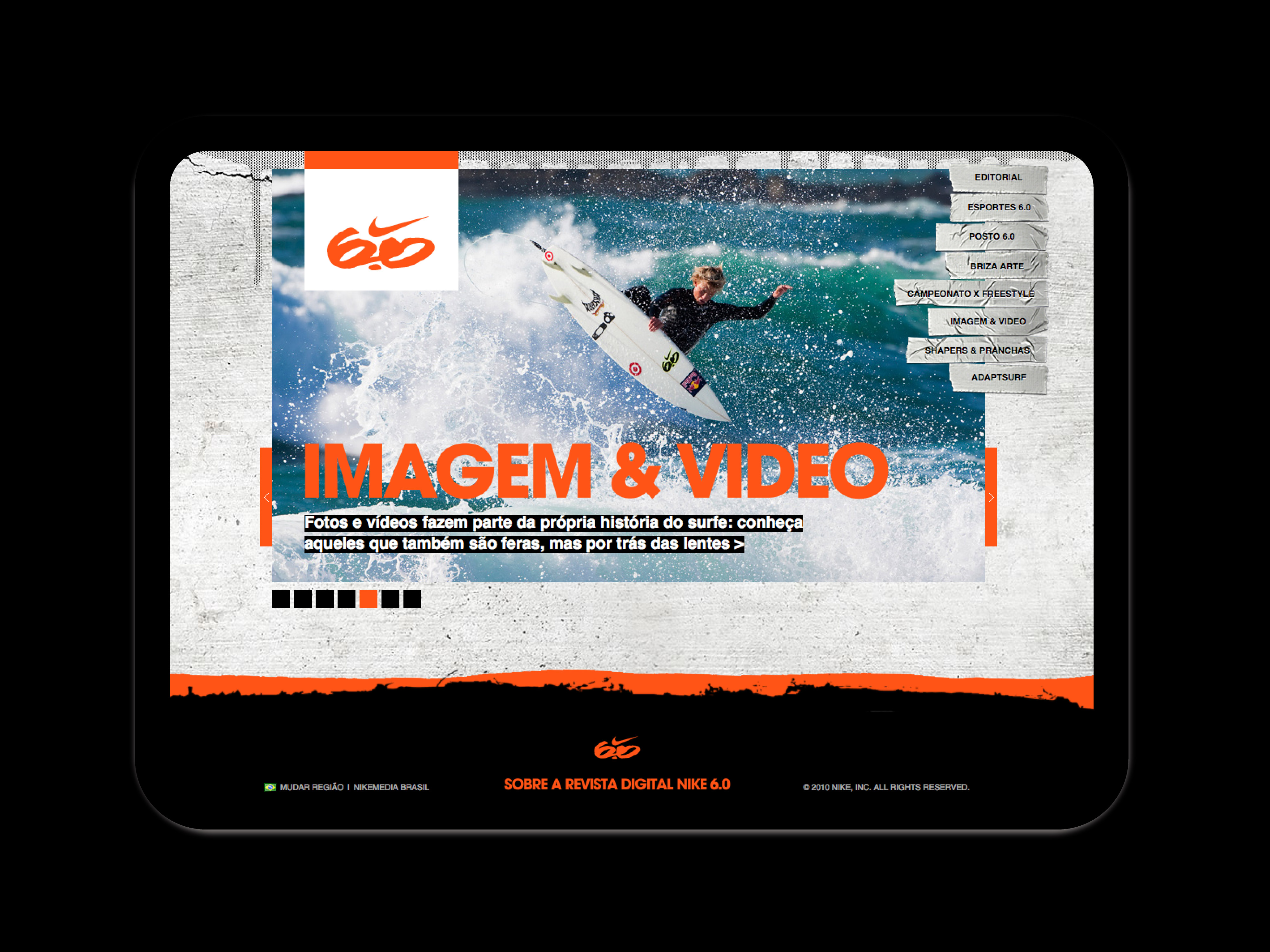 For a major Nike 6.0 event in Rio de Janeiro, I transformed their printed pocket magazine into a tablet-optimized web app. The project was designed to explore the multimedia and accessibility capabilities of early tablets.